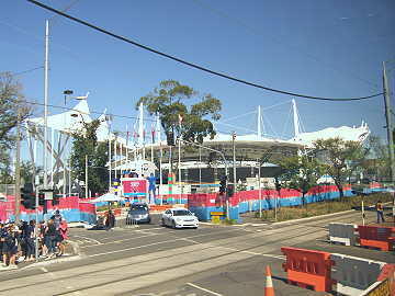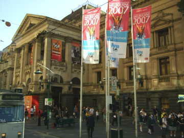 下船してもやたら来ないバスを港でしばらく待って、4時間のメルボルン市街観光に出かける。車窓から世界一高い マンション、セントパトリック教会、州議事堂、メルボルン監獄、リアルトタワー、セントポール寺院などを見物す る。フィッツロイ庭園では下車して英国から持ち込んだというキャプテンクックの家とか温室などを見物。