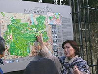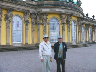 案内板で現地ガイドから説明を受ける。このガイドさんは学者タイプであった。 サンスーシー宮殿は中を見学することができなかったが、庭園が素晴らしい。