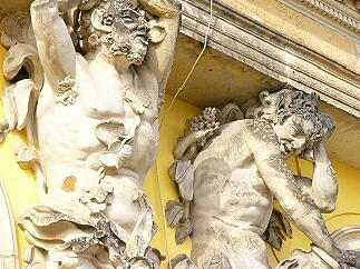砂岩?を使用しているためか大気汚染の被害が大きい。 修復の跡がまだらになっています。