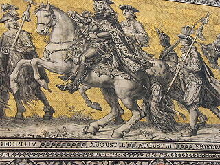 この広場で騎馬戦をした アウグス12世の陶板壁画(マイセン製)