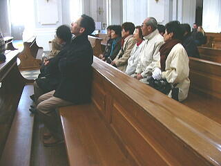 皆さん神妙に説明を聞き入っている。 服装は真冬並みです。