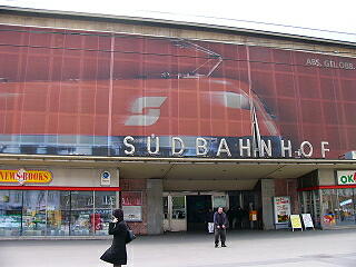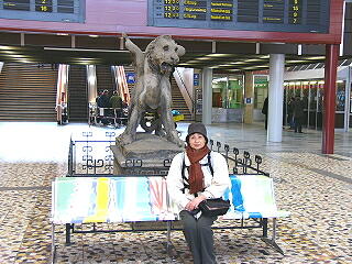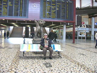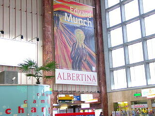 日本ではさしずめキヨスク。鳩が駅構内を我が物顔で飛んでいた。ムンクの展覧会の広告(右)