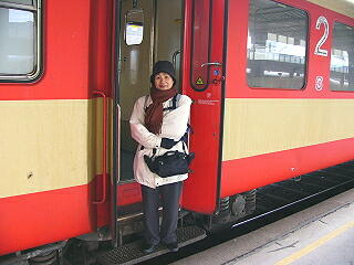 デッキに乗っていかにもこの列車でどこかに行く雰囲気。