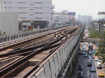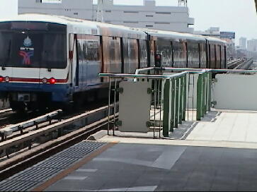 電車の前後。スマートなデザインが気に入りました。さすがドイツ製です。線路脇の第三軌条が見えます。 集電方法は下から押さえつける方法のためカバーが取り付けてあります。感電防止?