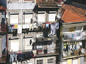 市街地をバックに記念写真 南欧の洗濯物は派手に干すようだ