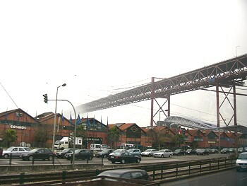 テージョ川に懸かる四月二十五日橋。 水道橋。人が落ちるまでこの上で商売をしていたとか