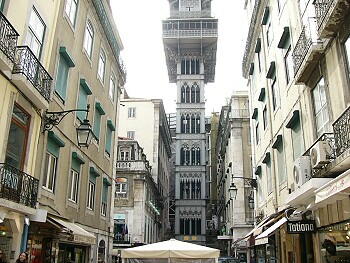 ロッシオ広場。地下鉄乗り場(右写真) エレベーター。とにかく隙間だらけで高所恐怖症