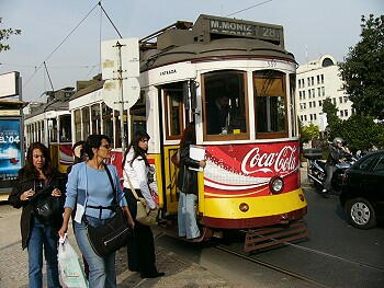 ケーブルカー。この坂道を歩く人も結構おります。 バイシャ地区を回る28番線。この電車でスリに