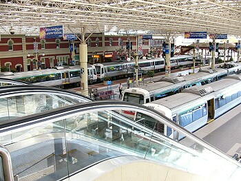 パース駅では東西方向と南北方向に電車が走ります。