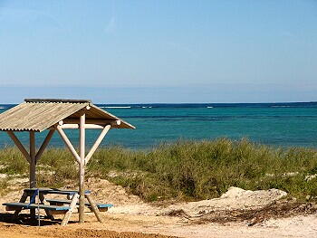 途中海岸に立ち寄る。広がる海はインド洋 ピナクルズを遠くから見るとこのように見える