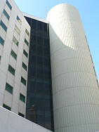 面白い形をした水道会社ビル 大阪のおばさん顔負けの交差点内の二重駐車。ただし交差点の角は