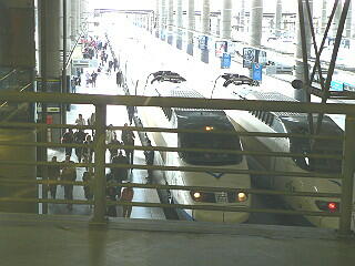 AVEの乗り場は爆破事件の影響?なのか、セキュリティーが厳しく、入り口で係員が乗車券をチェックし、手荷物は空港にあるようなX線検査機を通します。