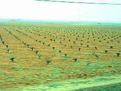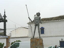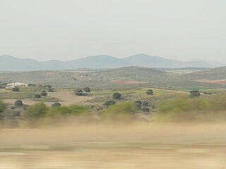 移動中の景色もオリーブ畑からブドウ畑が次第に多くなってきた。しかし、相変わらずの平原が限りなく続いている。少し退屈気味になってきた。 移動中に奇怪な山に出会う ドンキホーテ像