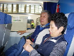 AVEの前で記念写真をパチリ ビュッフェに入り浸りのお二人さん リラックススタイルの車内