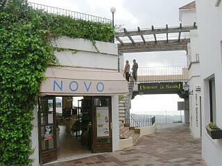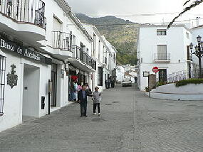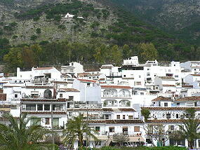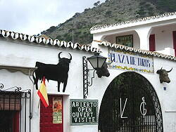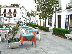 今日はコスタ・デル・ソルのホテルを出発して、30qほど進んだところにあるミハスの街を観光する。ミハスは裏通りに向かうと一軒一軒の家に、鉢植えの花が飾られている。 白い漆喰壁と赤い花のコントラストが素晴らしい。