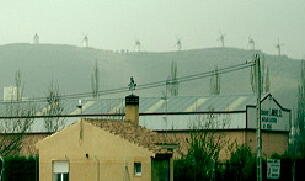 この辺りはブドウ畑ばかりである 丘の上にズラリと風車が並ぶ