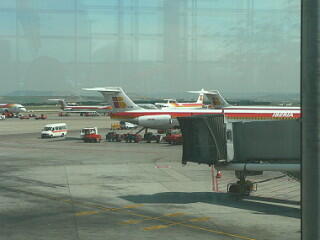 本日は半日かけてコルドバに向かう。7時発のIB2617便に乗るため、早朝5時半起床し、紙袋に入った朝食を持たされ空港に向かう。外はまだ真っ暗である。当地は既に夏時間に入っているため、いつまで経っても明るくならないのには参った。スペインの標準時は元々GMTに対して1時間進んでいる。しかし、経度を見るとほとんど英国と同じ位置にあるため、夜明けが遅い。さらに夏時間が加わるとさらに夜明けが遅くなる計算になる。8時頃にならないとすっかり明るくならない。しかし夜は9時になっても空は明るいといった日本ではちょっと理解しにくい時間である。