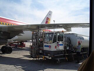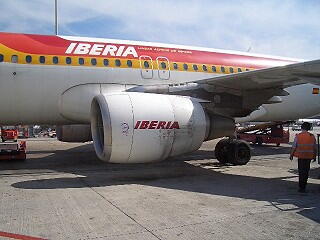 ここからはイベリア航空の機材(A320)を使用したJAL共同便となる。この空港で気が付いたことは桟橋に機を付ける時、例のオシャモジを持ったマーシャラーがいない。正面の表示板を見ながら横付けをしているように見えた。
