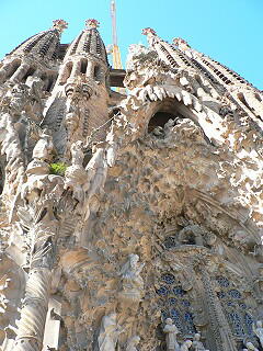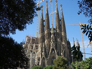 ガウディの作品で最も知られている建造物である。、着工(1882年)から100年以上経つ現在も建築工事中のサグラダ・ファミリア(聖家族教会)。