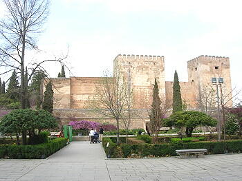 フェネラリフェから見たアルハンブラ宮殿の城壁。アルカスバなどなど。