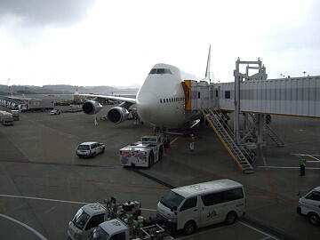 今回の使用機はジャンボ機で乗客は満席状態。搭乗順序はお金をたくさん支払った乗客を先に案内するのだが、その人数の多いことに驚く。機内に入ってその原因がわかりました。なんとエコノミー席は後部座席のみという配置であった。それにしてもいつも思うのだが、ジャンボのエコノミー席のピッチは何とかならないものだろうか。一度座ると身動きできない状態で、拷問以外の何ものでもない。しかし、最近の新聞に少しお金を出せば広い座席のエコノミー席を提供する予定があるという。