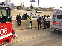 オヘア空港内の連絡電車 ハイウエイを一路シカゴ市内へ 途中交通事故現場に遭遇