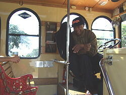 球技場の建物は何か不釣り合い 公園内で乗客を待つバス 運転手と仲良くなりました