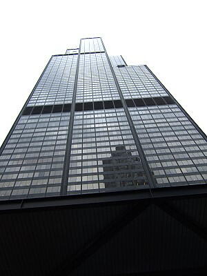 442mを誇るシアーズ・タワーの偉容 103階では窓を清掃中。いい度胸をしています。