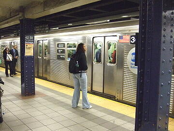 食事が終わって間もなく28人の集団がぞろぞろとガイドに案内されて、8番街西42丁目の地下鉄乗り場に向かう。ここの地下鉄の乗り場は歩道にいるたくさんの人たちと比較して、閑散としていて一寸拍子抜けの感じである。