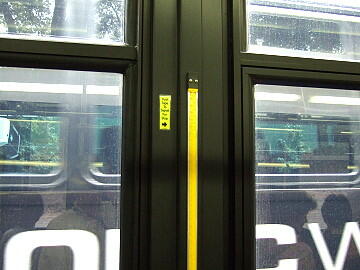 地下鉄を降りるとバスに乗り換え 降りるときは黄色のテープを触ります