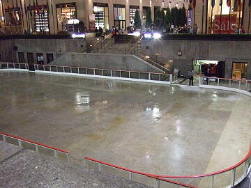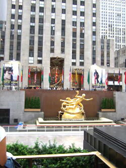 ロックフェラー・センター前の広場は、夏場は野外カフェになっています。 ここが冬になるとアイススケート・リンクになるのです。そして正面にクリスマスツリーが飾られます。 我々が行ったときは、ちょうどリンクを作っている真最中でした。
