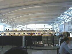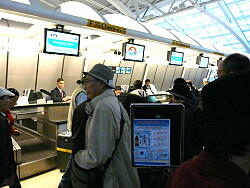 空港へ到着すると直ちにチェックインするが、米国ではいつものように去る者は追わずで、出国審査はパス。この方法はアメリカだけの制度かは不明だが、入国の際のあの厳重な審査と比較すると拍子抜けの感じである。