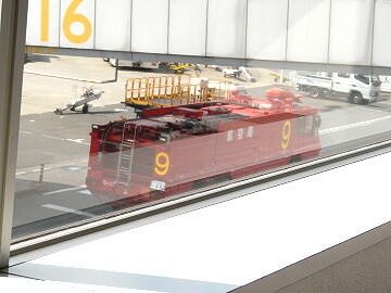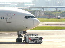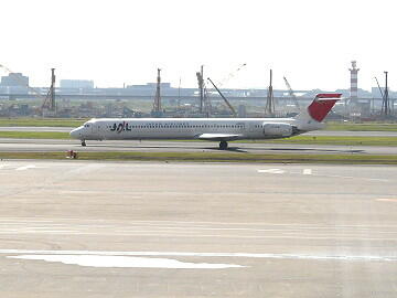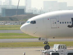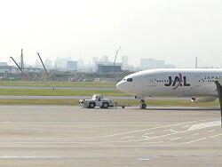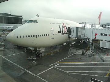 我々の飛行機は14:40発JAL1113便で定刻出発を期待していたが、機体整備で30分程遅れてしまった。オイルゲージが異常を示しているのでそのチェックに手間取っているようだった。機体を見るとAPUも止めているので機体周りには電源車や空調支援車その他が取り囲み機体にはいろいろなホース、ケーブルが何本も取り付けられており、まるで手術後の入院患者を見ているようであった。