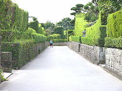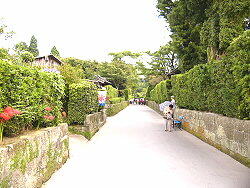 生け垣や通りはよく手入れされていました。ここから自家用車が出てくると一寸違和感がある。