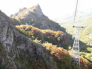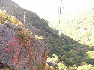 結構深い谷間である 恐怖のロープウェイを降りてヤレヤレ