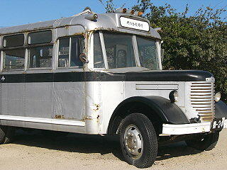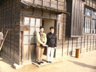 映画村の入り口 今は珍しいボンネット型バス