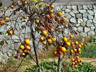 町外れで柿がいっぱいの柿木を見つけました 道の駅(からり)で昼食