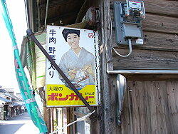 うだつのいわれの掲示板 町が古いというのに合わせて懐かしい看板があった