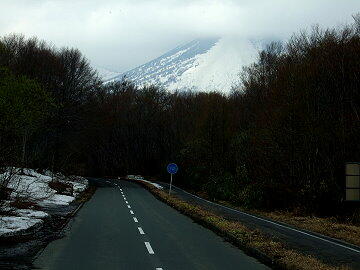 八甲田山を抜けるとき残雪がこのように残っておりました。途中、スキーヤーの姿も見受けられました。