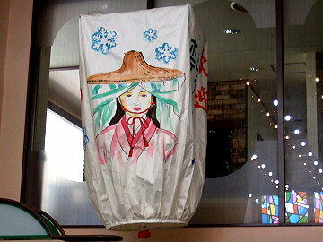 ロビーに飾ってある紙風船(熱気球)2月に飛ばすという 見事なホテル前の桜並木