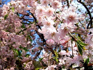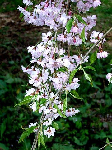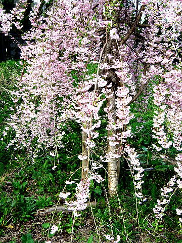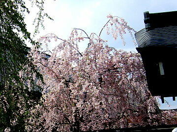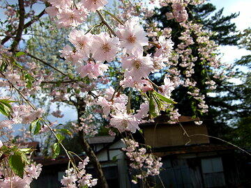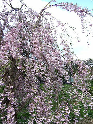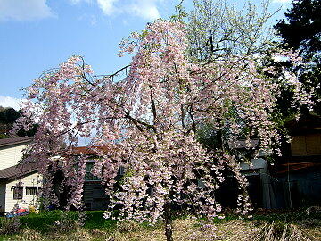 伝承館のしだれ桜は満開 武家屋敷のしだれ桜はごらんの通り。残念!