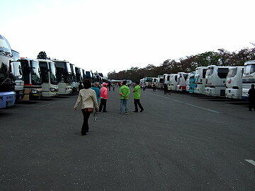 このような状態を「花むしろ」というらしい 駐車場はバスで一杯