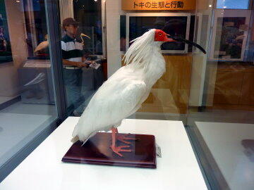 日本の最後のトキは1968年3月に新潟県佐渡郡の真野町で宇治金太郎により捕獲され同県の新穂村にある佐渡ト キ保護センターで飼育された。1981年に当時佐渡島に生存していた全てのトキが捕獲され、キンとのペアリングも試み られたが、既に老齢のキンが卵を産むことはなかった。1995年4月にミドリが死亡するとただ一羽残された日本産最後 のトキとなった。2003年10月10日の朝、ゲージ内で死亡しているのが見つかった。死因は、突然飛翔してゲージの扉 に衝突したことによる頭部挫傷と見られる。推定36歳、飼育慣れしたキンが最後まで生存する結果となった。その臓器 は全て冷凍保存されている。いずれ遺伝操作によって日本生まれのトキが復活するかも知れません。
