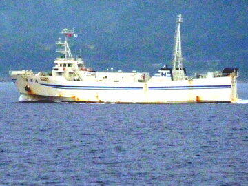 「おけさ丸」を瞬く間に追い抜いていきます RORO貨物船 「日海丸」