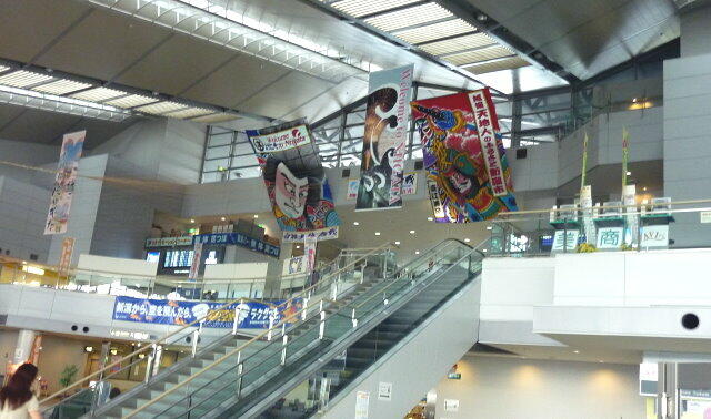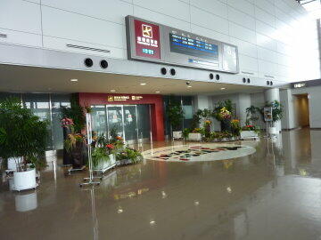 新潟〜佐渡間に飛行機の定期便が再開されました 新潟空港の国際線到着ロビーは飾り付けが多い