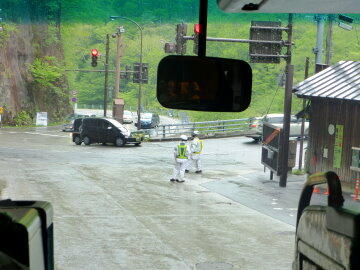 帰りの釜トンネル入口 ここで交通規制が行われています