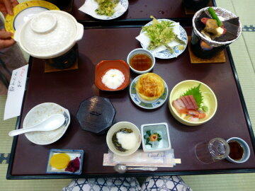 上高地で昼食をとってから、今度は来た道を松本まで引き返し、高速道で本日の宿泊地、山梨県の石和温泉へ向か う。途中で諏訪湖SAで休憩を取る。
