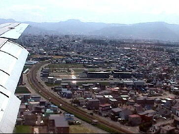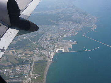 紋別空港離陸直後、自機の影がくっきりと 丘珠着陸前の学園都市線。いつの間にか