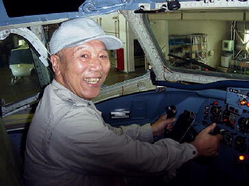 計器板の数々、さすがに古いという感じ。 主翼に上がって、はいパチリ