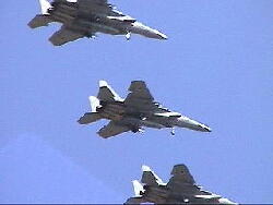 空自F15による編隊飛行。ダイヤモンド編隊時、リーダー機の後続機はたとえ高度差を取っていても乱れた 気流の中でのコントロールは大変ではないだろうか。